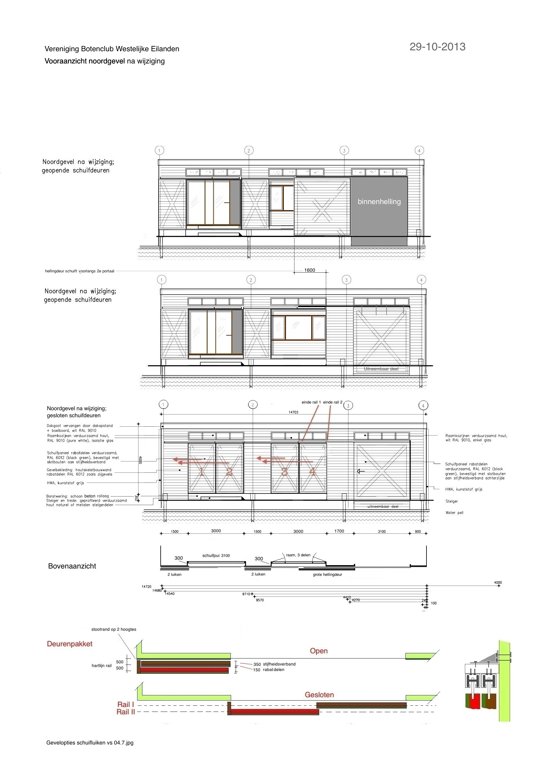 gaf meteen de gelegenheid om het concept nog eens te overdenken, want vervuilde grond afgraven heeft toch heel veel voeten in de aarde. We hoeven weliswaar niet te saneren, maar graven en afvoeren moet volgens de regels en die zijn streng (en dus duur!). De vloer van de nieuwe kantine wordt nu 35 cm hoger gelegd waardoor alle grond kan blijven liggen. Het aantal treden naar buiten naar de steiger gaat daarmee ook omhoog en wordt mooi geïntegreerd in de hoofdsteiger. Zodra de gemeente haar goedkeuring geeft aan de gewijzigde plannen kan de aannemer zijn prijs rond maken.