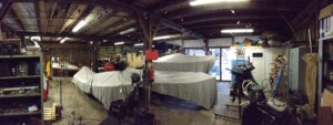De loods van de werf is een echte werkplek voor het klussen aan je boot. Op onze werf zijn klanten en leden in de gelegenheid om onderhoud en reparaties aan hun schepen te doen. Er is de nodige apparatuur beschikbaar, maar meestal werkt u met uw eigen gereedschap.